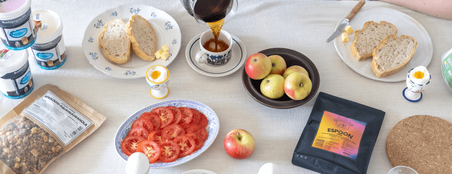 Katetaan aamiaispöytä tuoreilla mauilla ihan tästä läheltä! Meille on tärkeää nostaa esille laadukkaita ja lähellä tuotettuja tuotteita. Niiden kautta voimme tarjota ruokia ja tuotteita, joilla on makunsa lisäksi myös tarina. Avaamme muutaman esimerkin niistä tuottajista, joiden tuotteita et ehkä vielä ole huomannut valita omaan aamiaispöytääsi.
